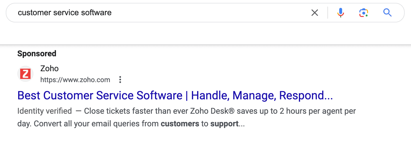 An effective way to stand out in Google ads is to play on your strengths. Zoho clearly states their most popular feature and how it helps their audience. Intrigue your audience and prove to them why they need your product or service.
