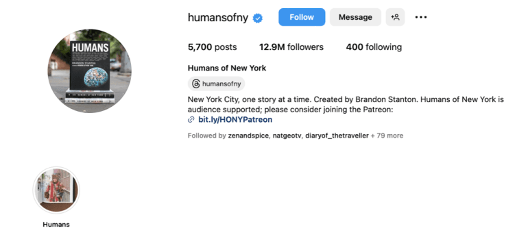 For the case of Humans Of New York, this page was simply dedicated to sharing stories from people who lived in New York. Nothing more. Nothing less. That’s why a bare bio speaks volumes to their audience.