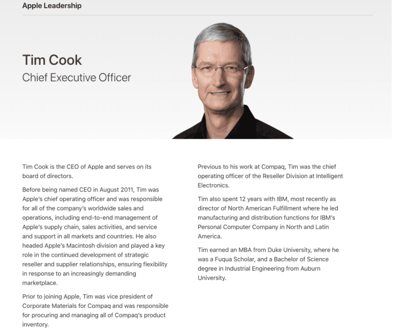 To nail down an executive bio that draws attention, share your experience in the field, achievements throughout your career, and personal passions.