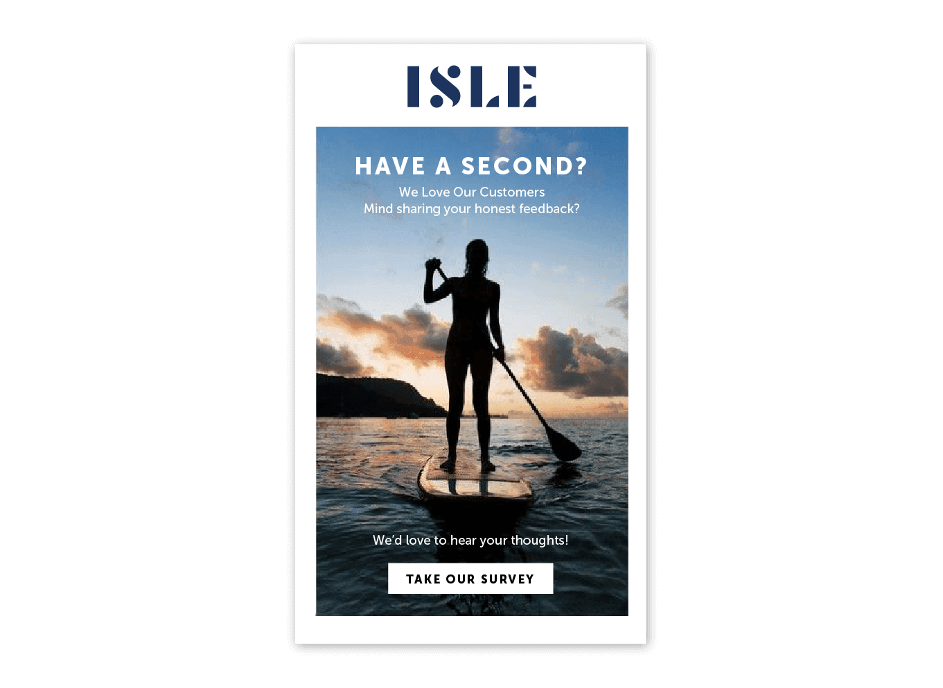 The best way for Isle Surf and SUP to gather competitor insights is by emailing a survey to new and current customers—especially those who just bought a paddleboard. A simple link in a thank-you email (separate from the order confirmation) makes it easy.