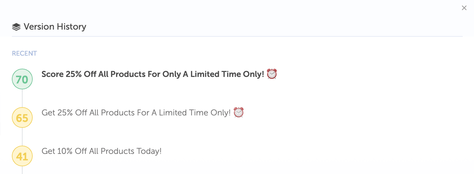 Pro Tip: If you ever need a look back on past subject lines, access your version history, which contains all of your past subject lines and their scores.