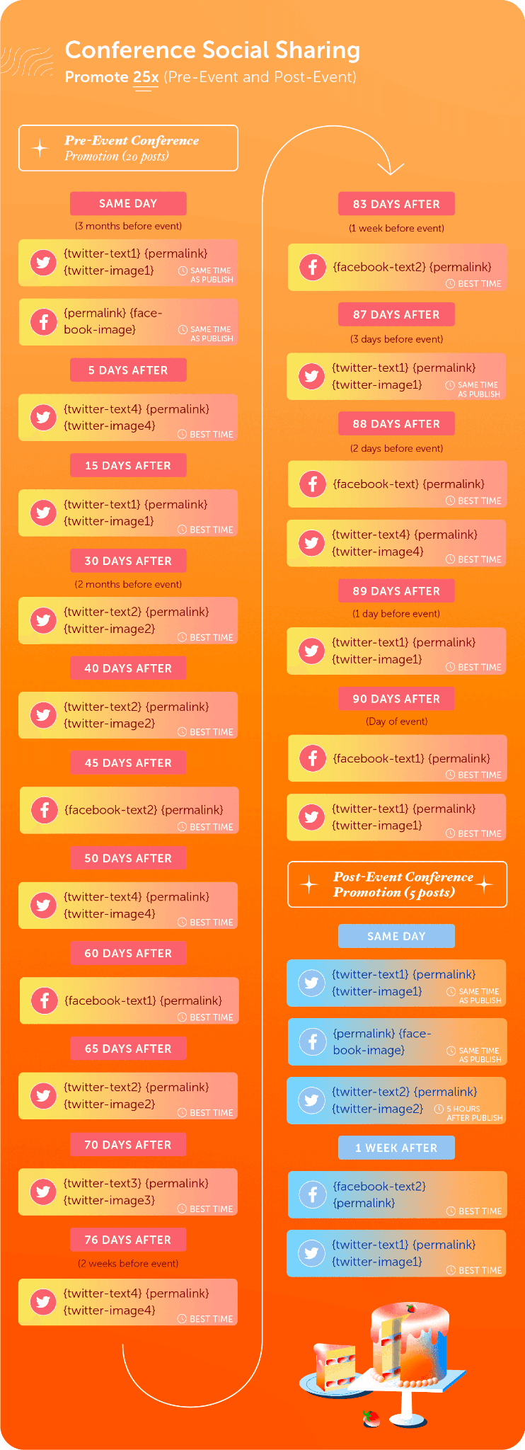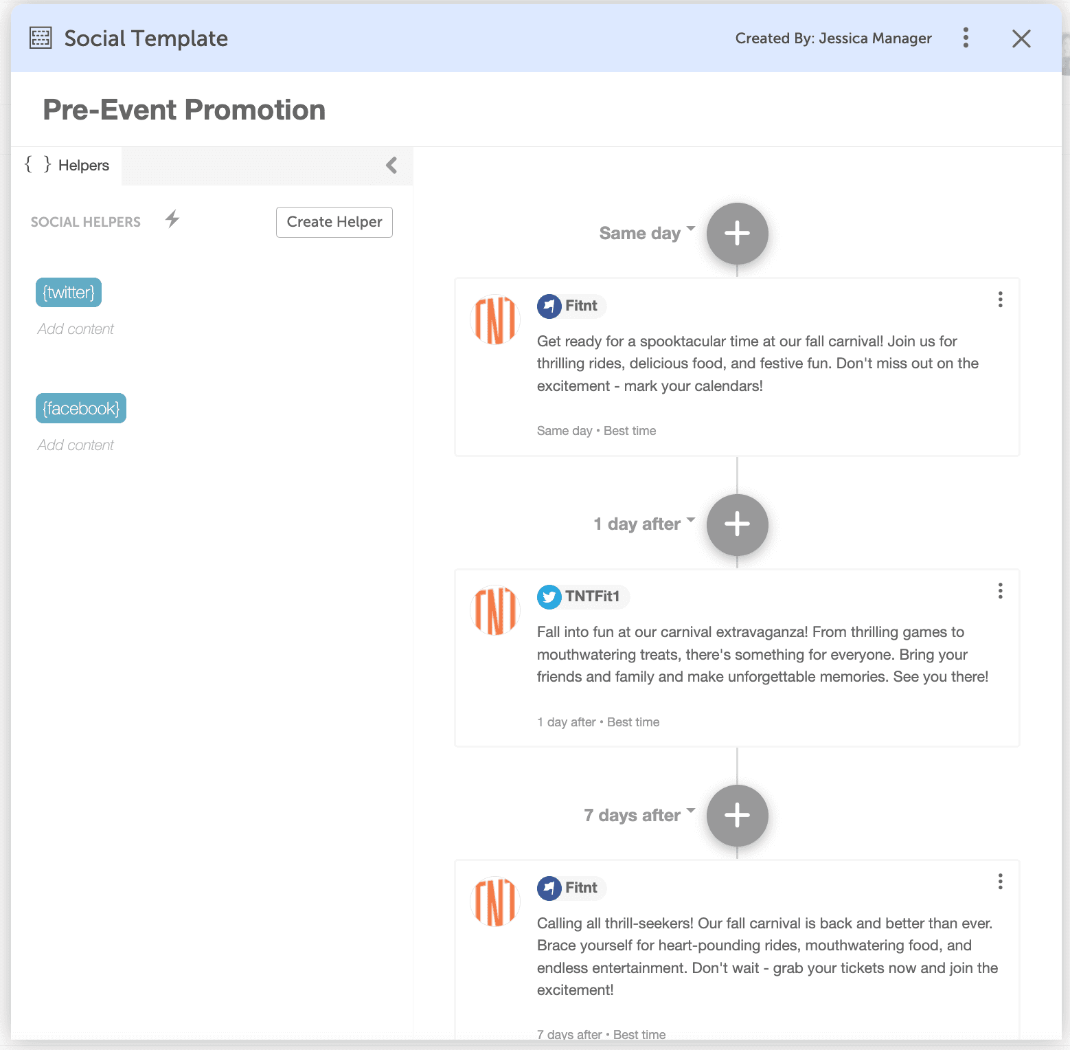 This way, you can easily reuse this schedule to promote future events. Here’s an example of how you could schedule out promotional messages for events with Social Templates.