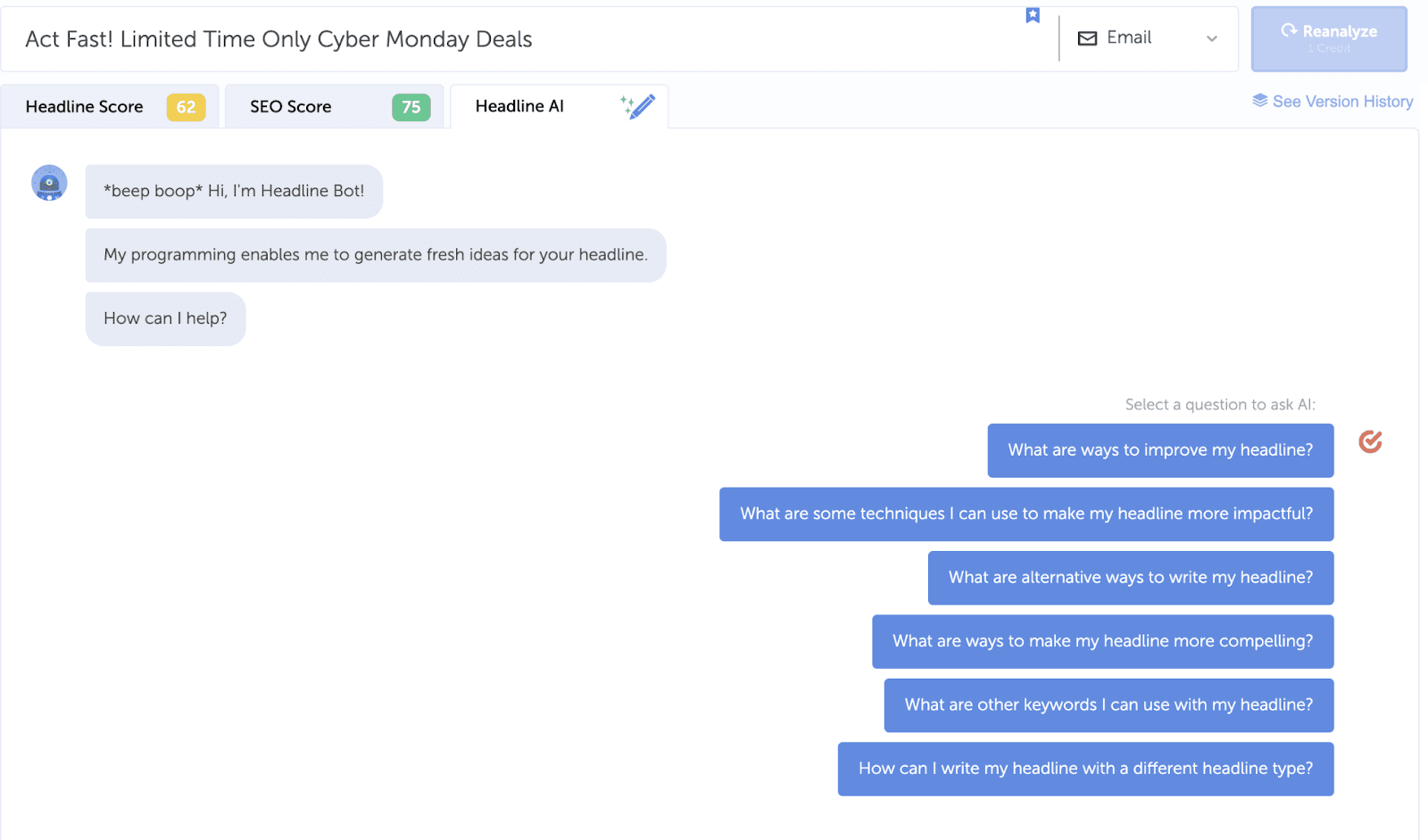 • SEO Score: How well your headline will rank on search engines compared to competitors.