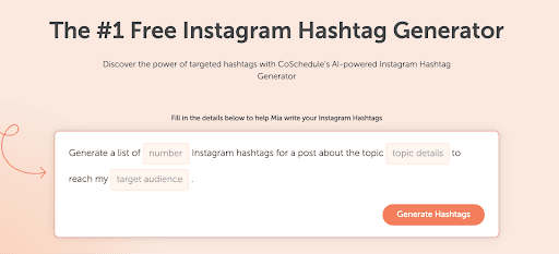 Research and include relevant hashtags in your posts. Mix popular and niche hashtags to reach a broader audience. CoSchedule’s AI-powered Hashtag Generator, streamlines the process of identifying effective hashtags for your Instagram posts. This tool eliminates the need for manual hashtag research, saving time and ensuring your content reaches both broad and targeted audiences.