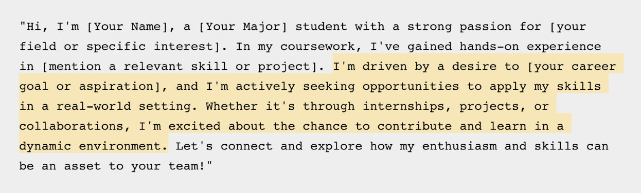 Here’s an example of a quick and easy elevator pitch for students applying to jobs.