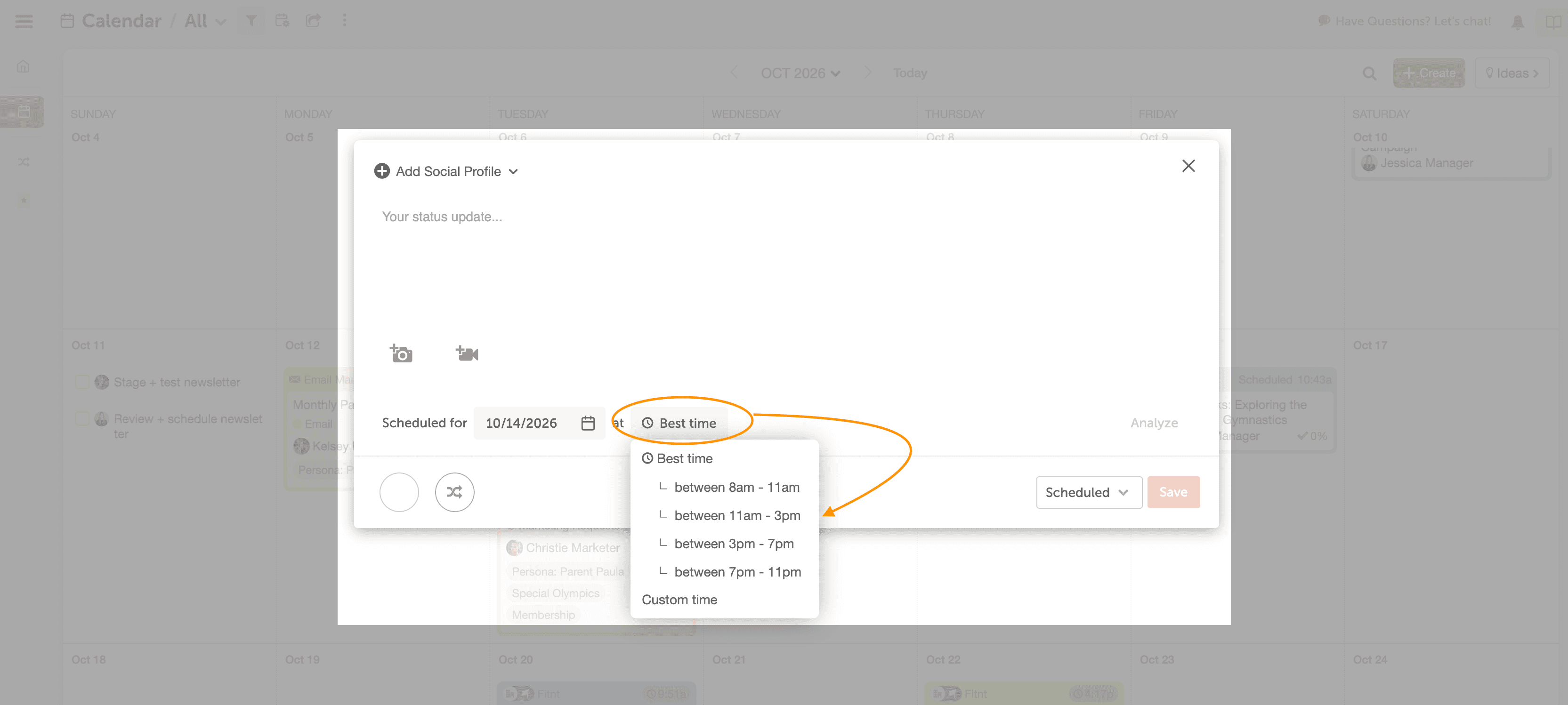 Use Best Time Scheduling to publish messages at the best time for engagement on specific networks. This helps maximize reach & engagement for your social campaign.