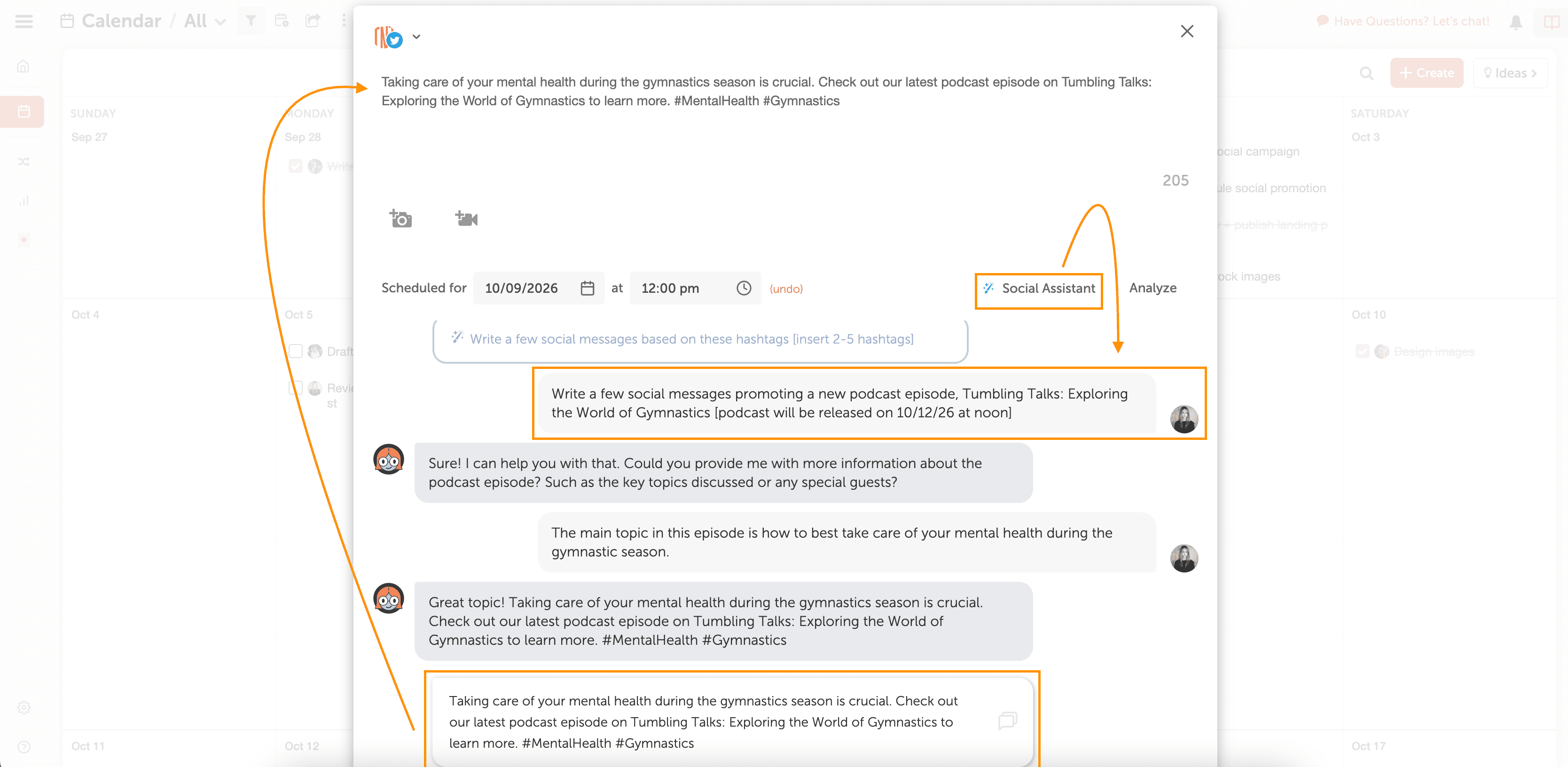 Use CoSchedule’s AI Social Assistant to instantly draft social messages for you, saving you time to focus on strategy instead of writing copy.