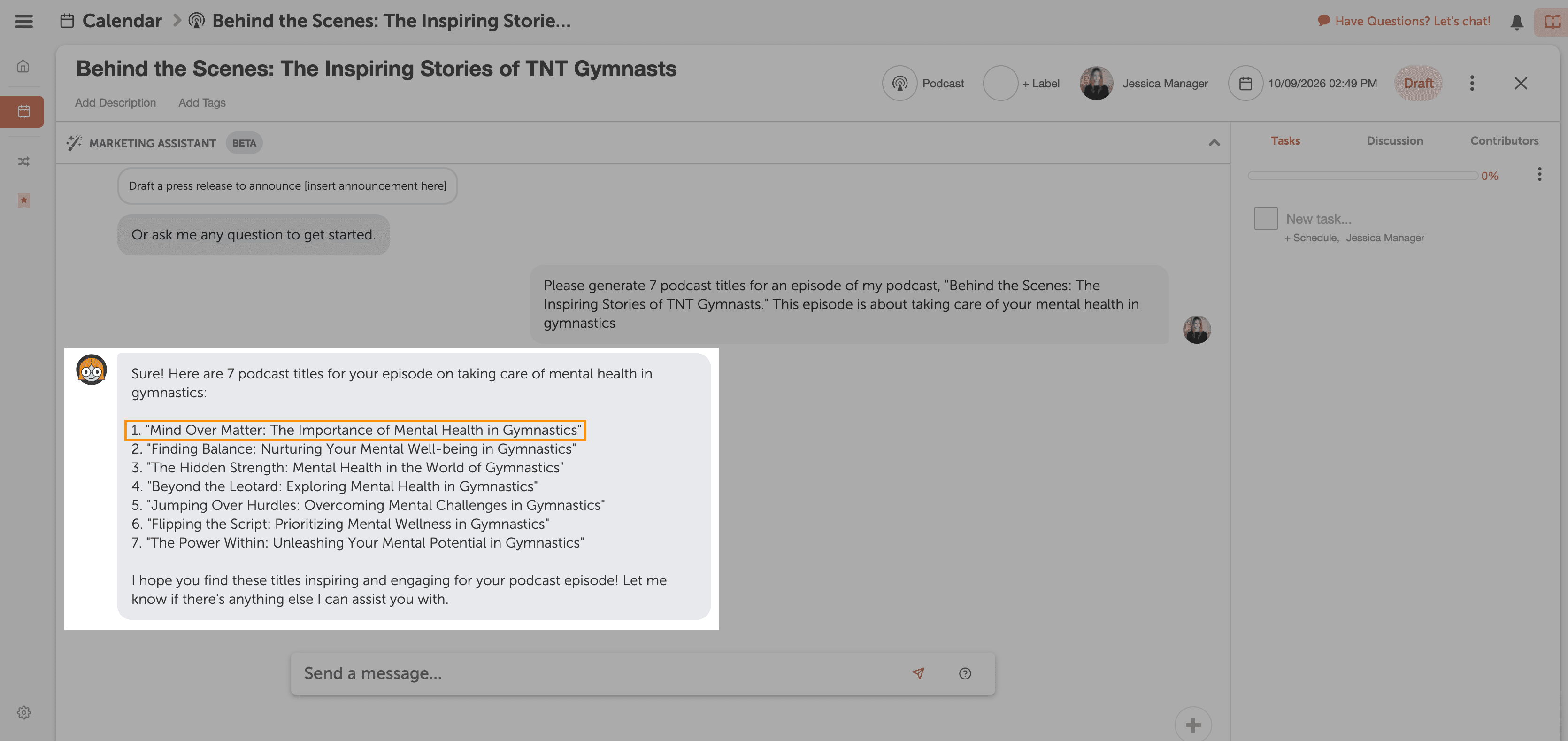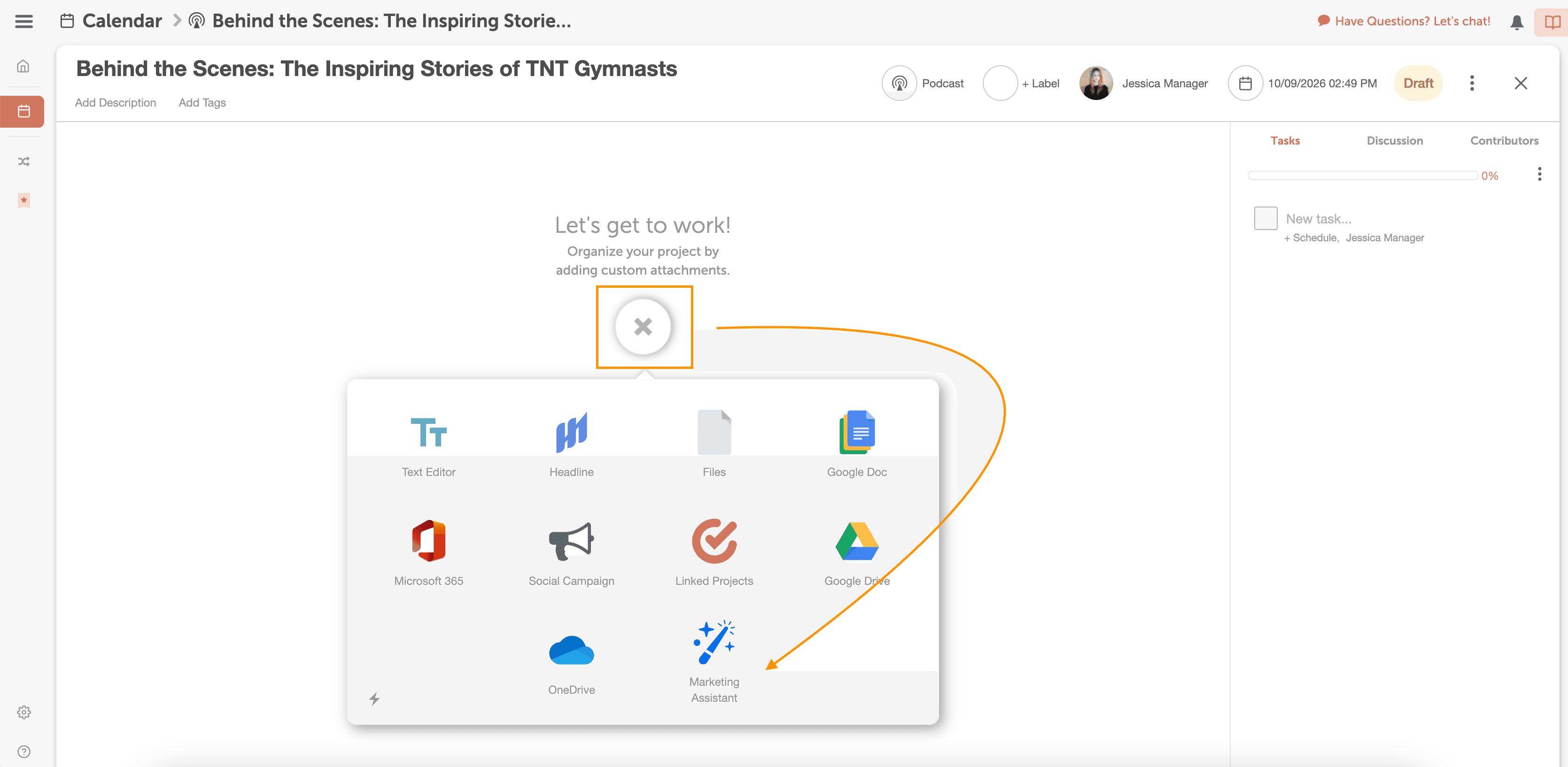Add CoSchedule’s AI Project Assistant to your Podcast project as an attachment.