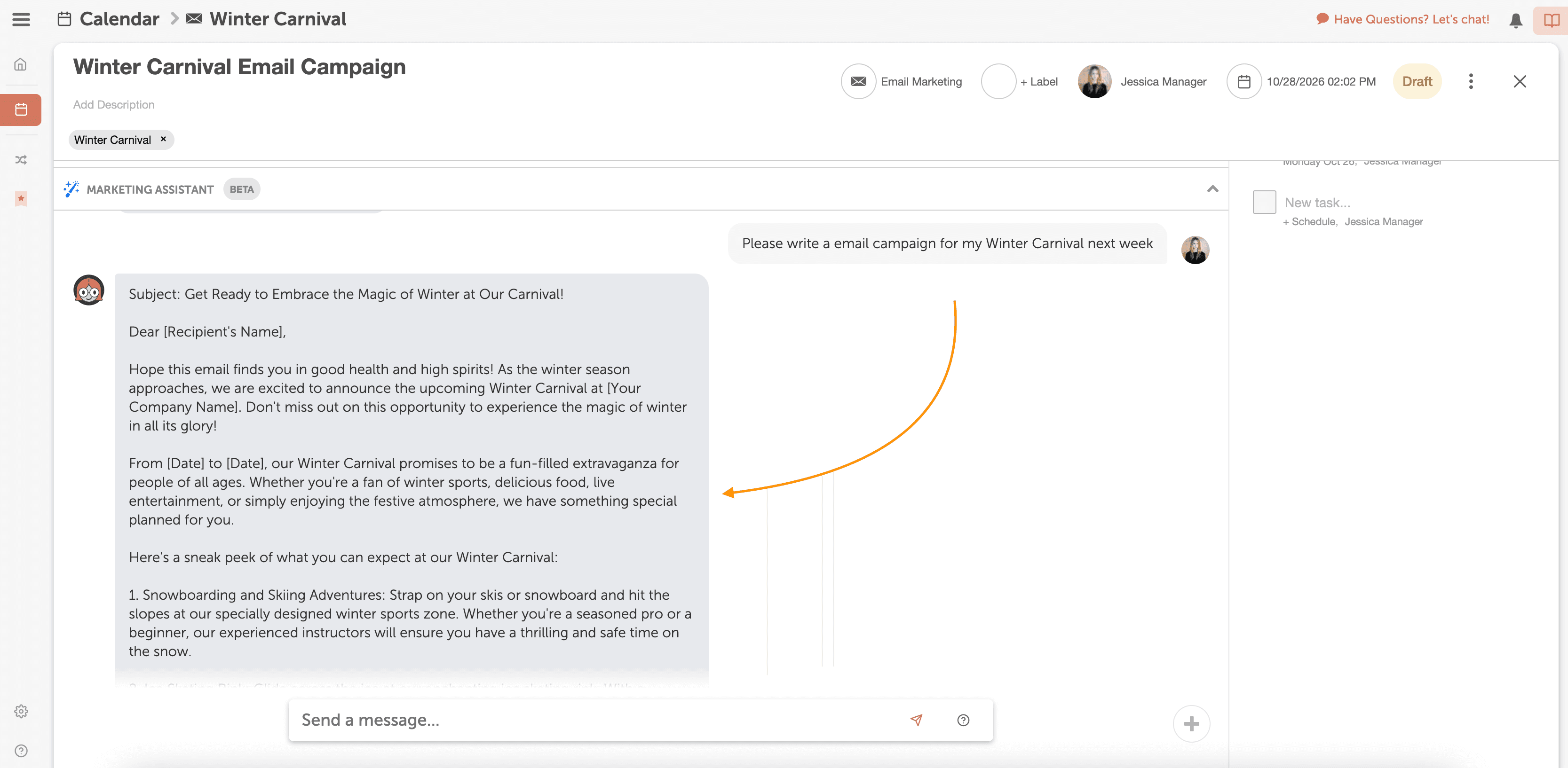 Ask Mia to help generate first-draft copy for your email campaign.