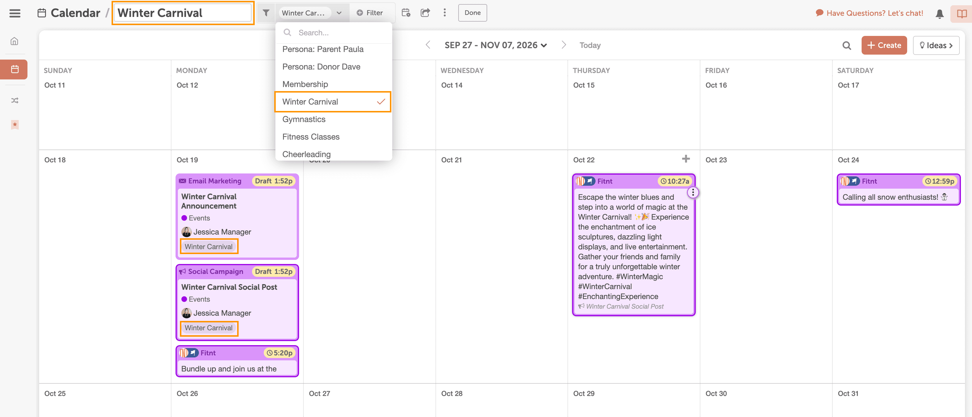 Create a saved view in your CoSchedule Calendar dedicated to your event tasks, projects, & social.