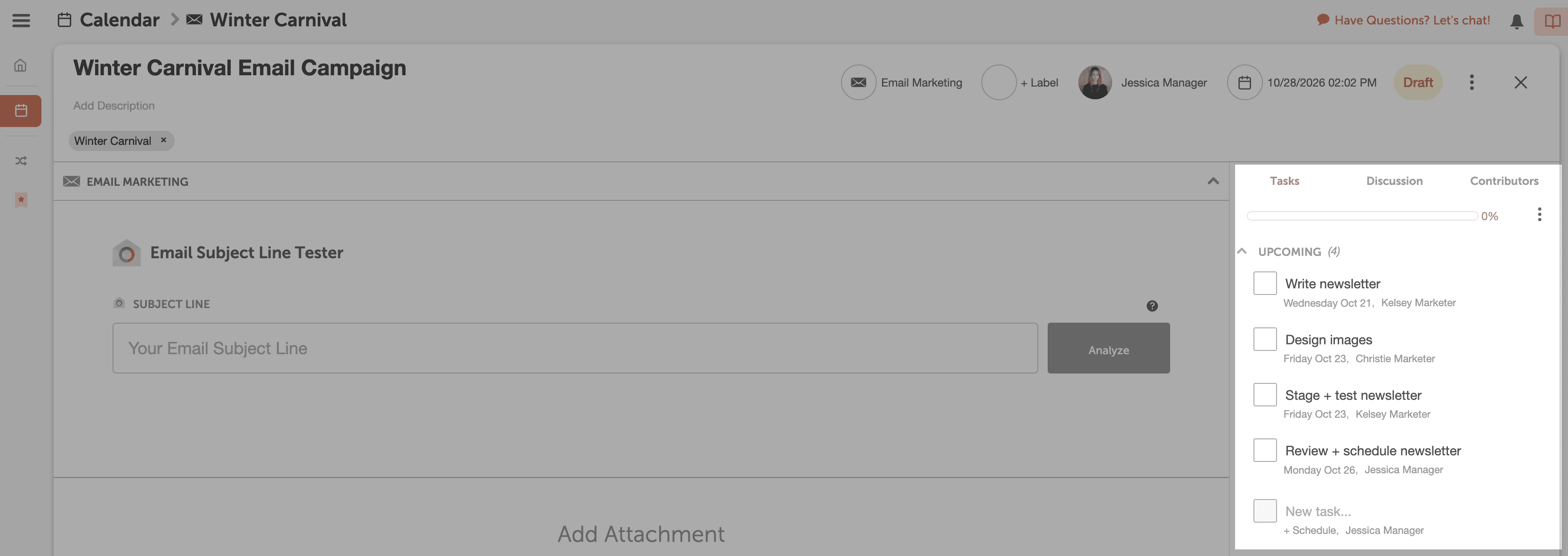 Make each email campaign a project on your CoSchedule Calendar.