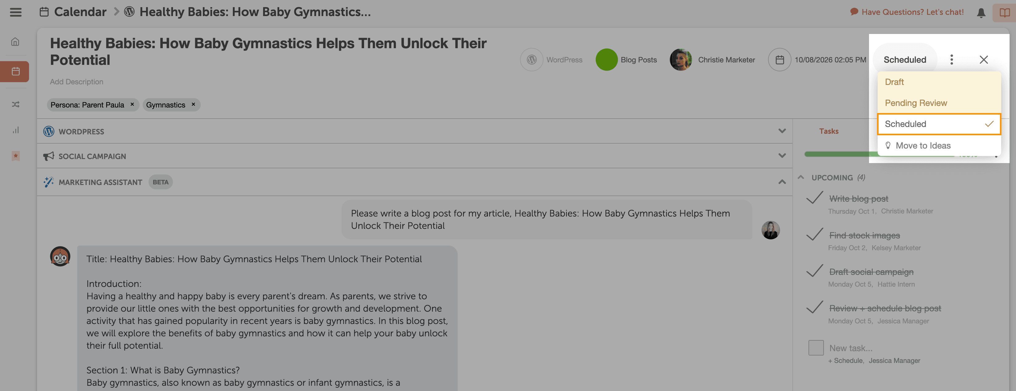 Simply, drag and drop your favorite blog post idea to add it to your Calendar to get started.