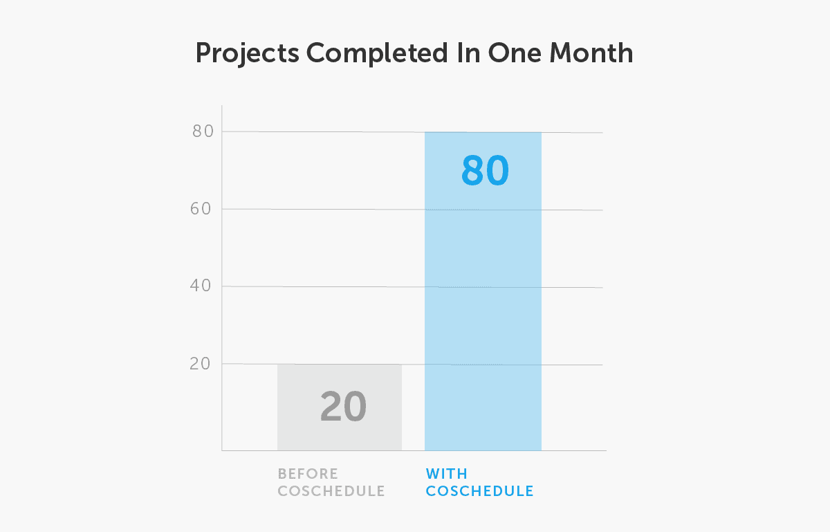 Facing a growing company and a drastic increase in projects, the Simpleview marketing team struggled to prioritize work and meet stakeholder expectations. Within one year of using Marketing Suite by CoSchedule, the 12-person team now completes 80 more projects per month. That’s 5 times more projects than they completed before using the Suite.