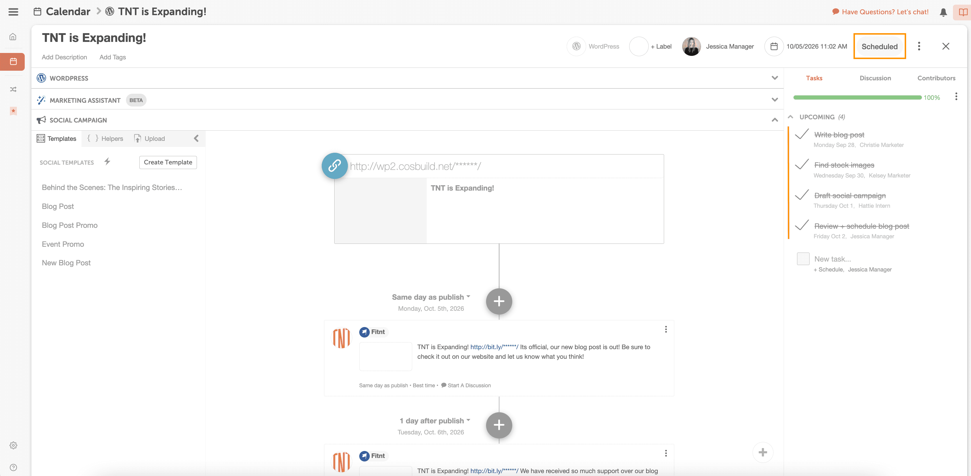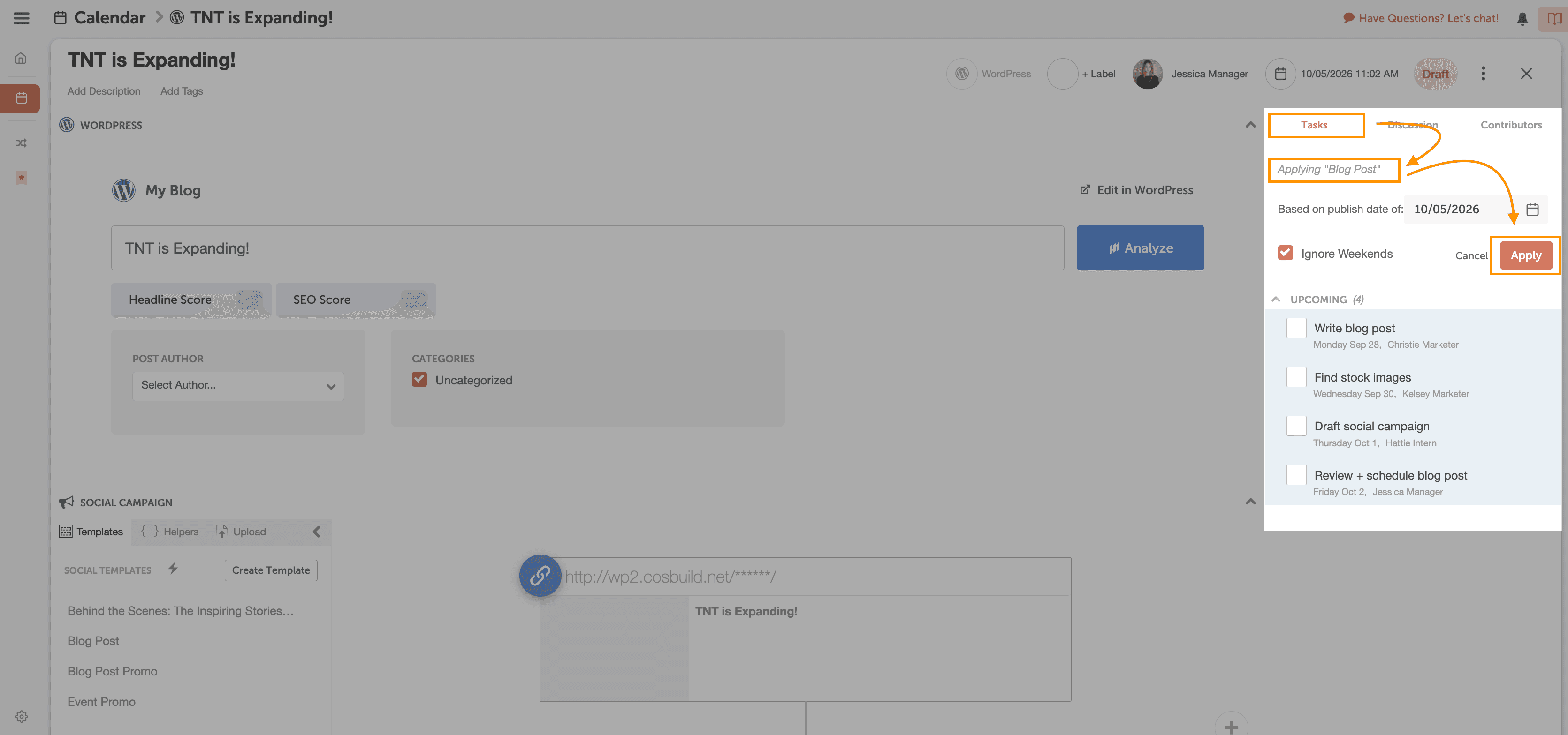 - Streamline your process using reusable task templates to meet deadlines before your WordPress post publishes.