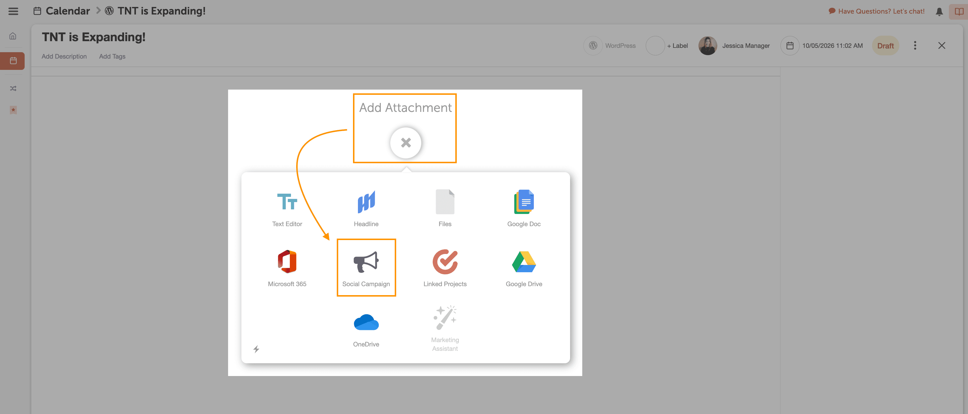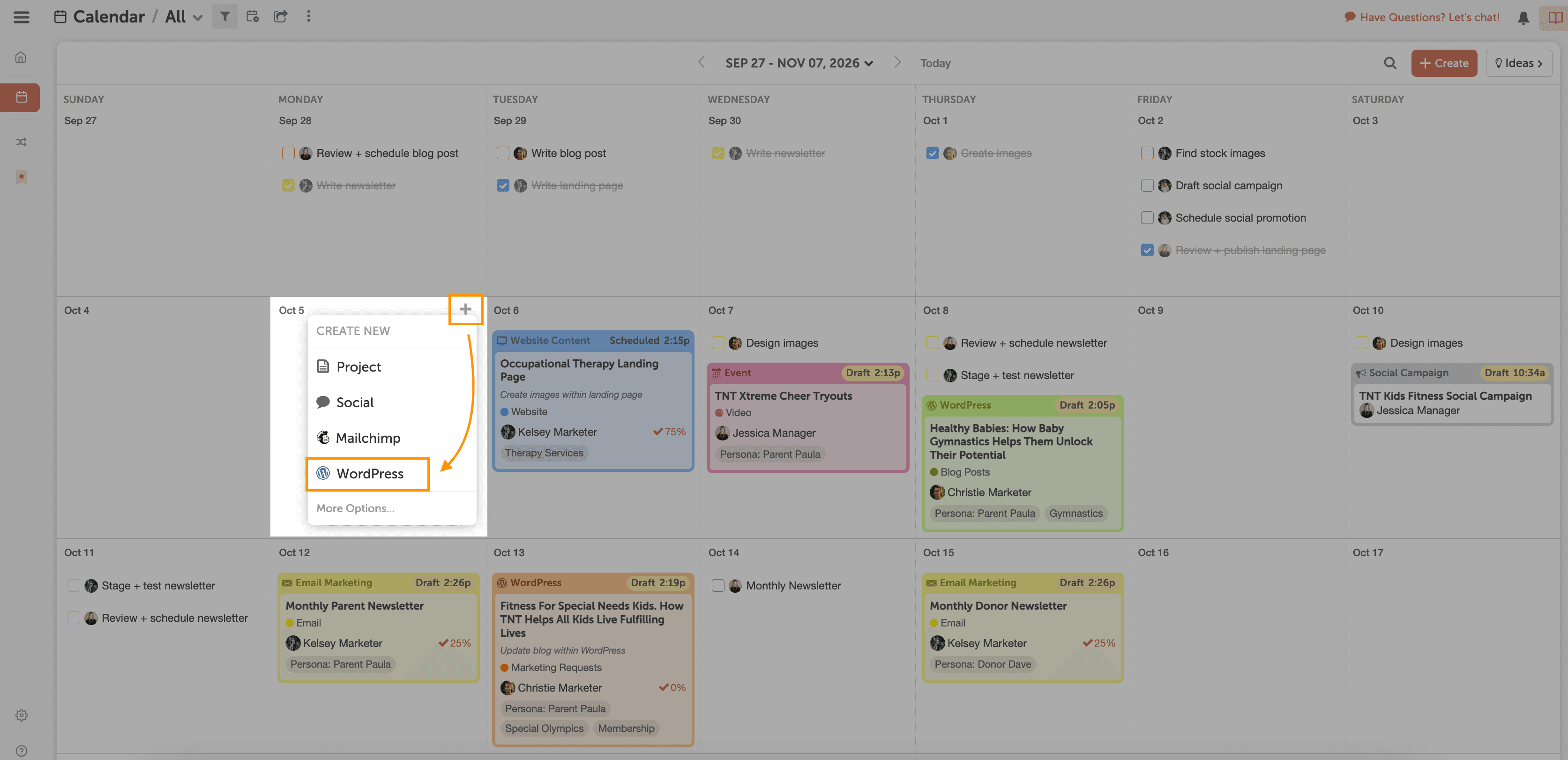 Once your WordPress integration is enabled, add new posts to your Calendar using the WordPress project type.
