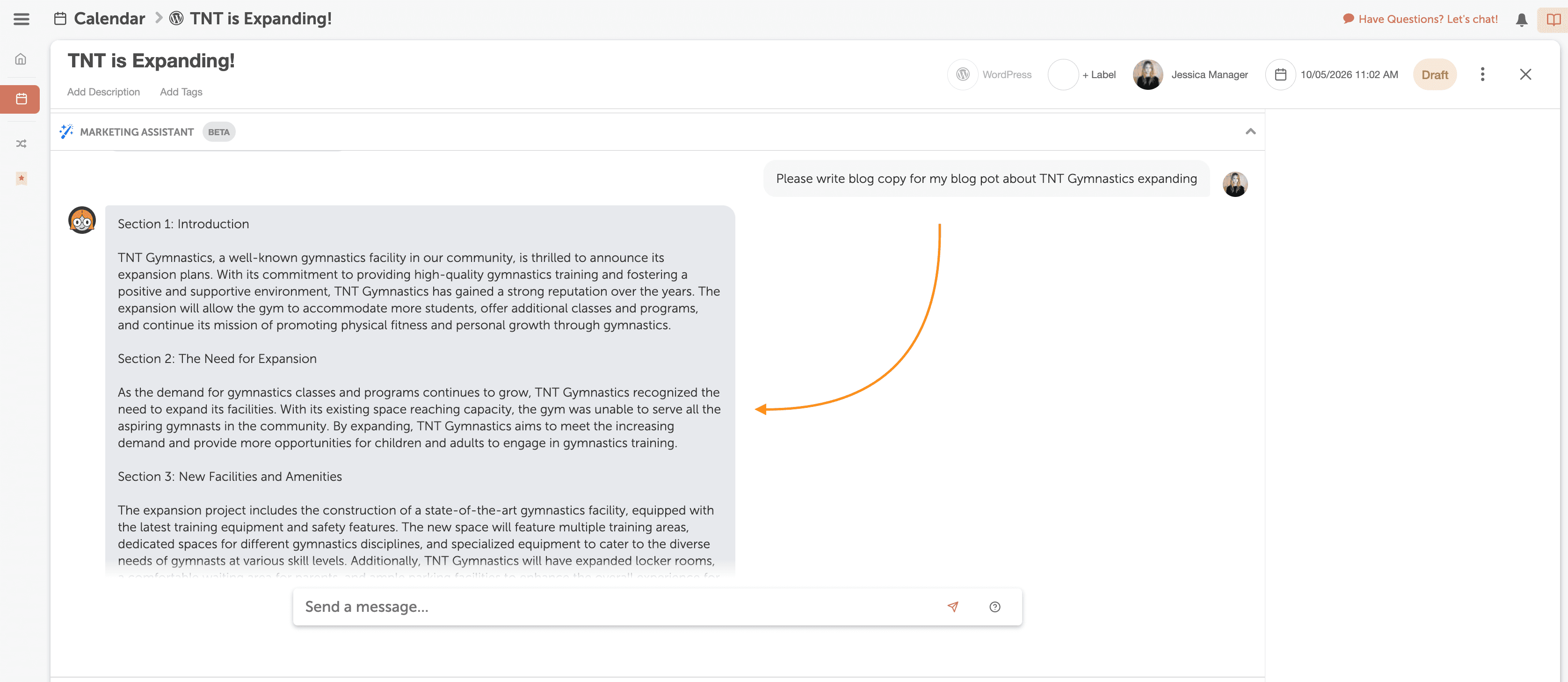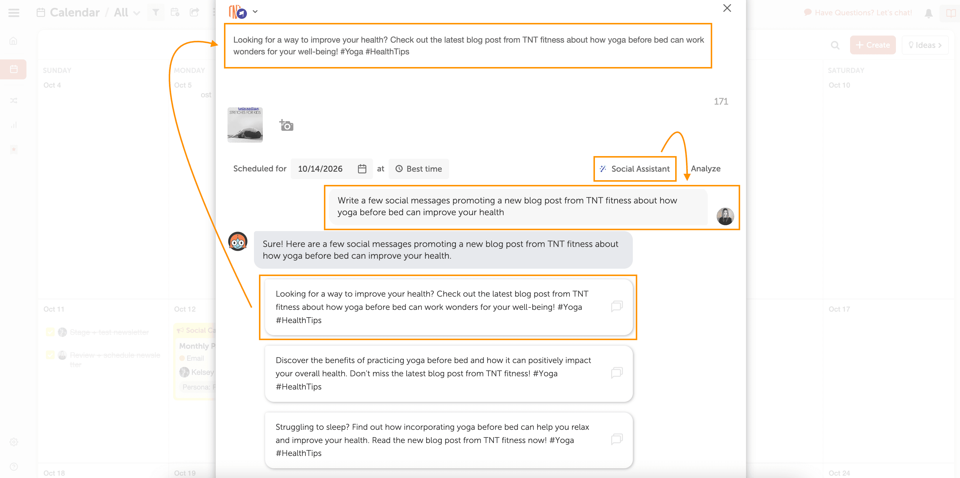 AI Social Assistant instantly drafts social messages for you, so you can focus on strategy instead of writing copy.