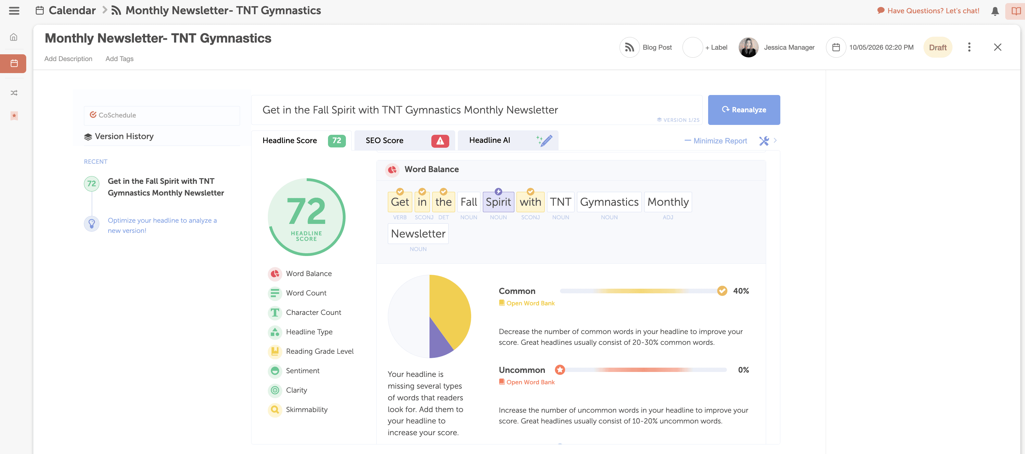 - Optimize Headlines for SEO: With CoSchedule’s Headline Studio integration, you can analyze your headlines and get SEO related suggestions to improve your SEO score.